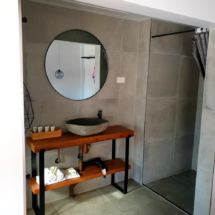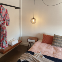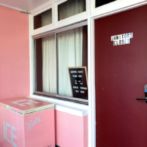 The room interiors are hip retro meets scandi chic style décor. There are 17 rooms all individually decorated. Our room has an ole school record player and several albums, not singles so assume they are 33’s. That’s old people speak for the RPM – revolutions per minute, how fast the record spins on the turntable. I love the artwork in each room and it’s like the amazing team at The Pink Hotel knew instinctively which room to allocate for me as you’ll see from my photo I am really digging that Hendrix and I have the same hairdo. We took a King suite and loved the thoughtfulness of the amount of space, the décor and layout of our room. Had a lovely view from the bedroom in the morning looking out from our window of the ocean.